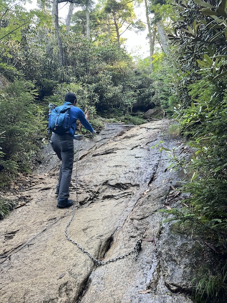 急登が始まり、大日小屋を通過すると、「大日岩」の手前で最初の鎖場がでてきます。このコース全体では、3箇所ありました。
