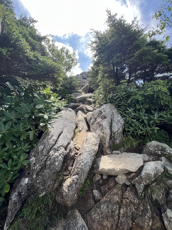 ここからまたけっこうな急騰などをひたすら登り続け、最後にゴツゴツの岩場を登りきると