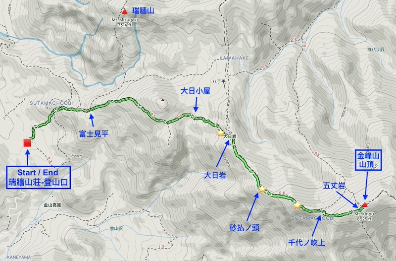 ●登山口:瑞牆山荘(山梨県北杜市須玉町小尾8861)前
