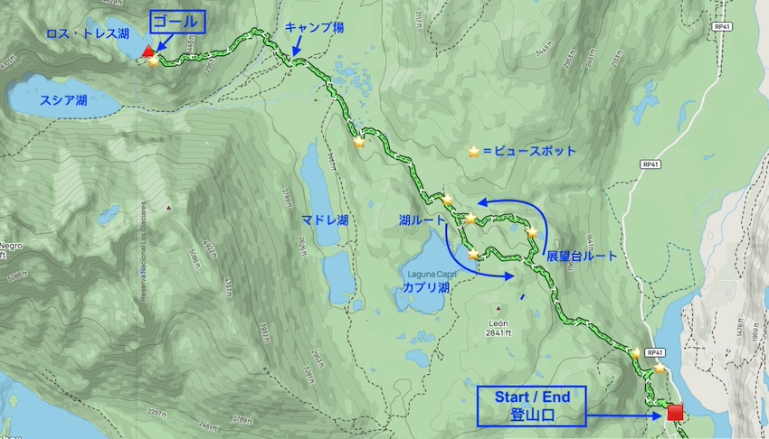 ●ルート:Laguna del Los Tres via Sendero Monte Fitz Roy(out & back)