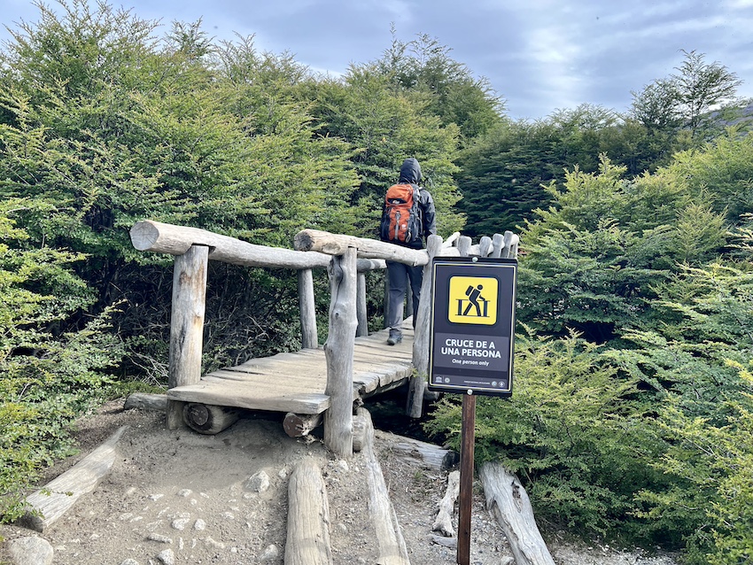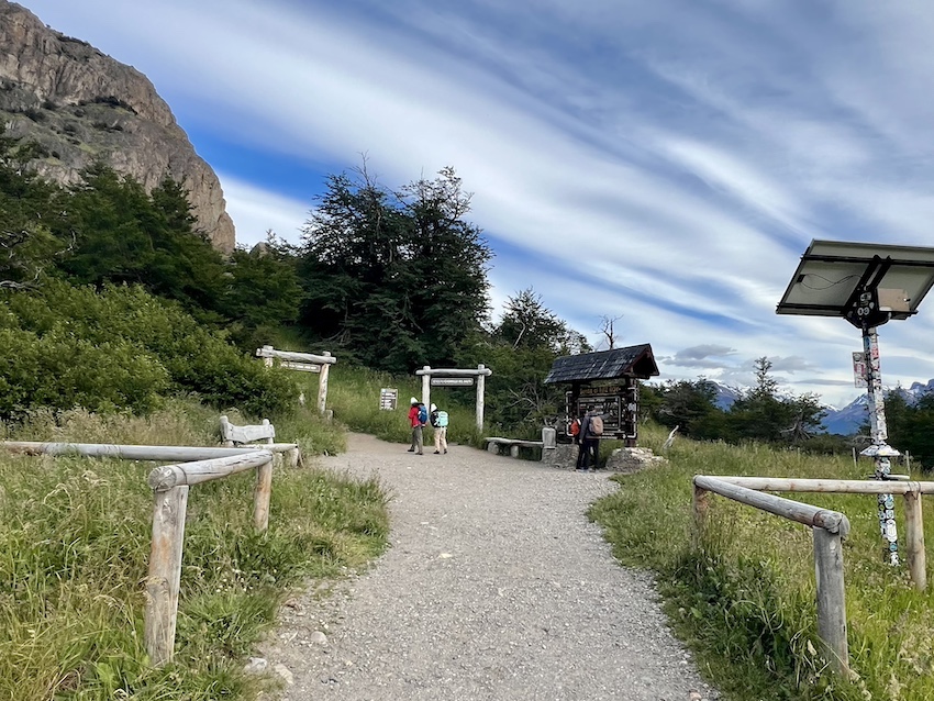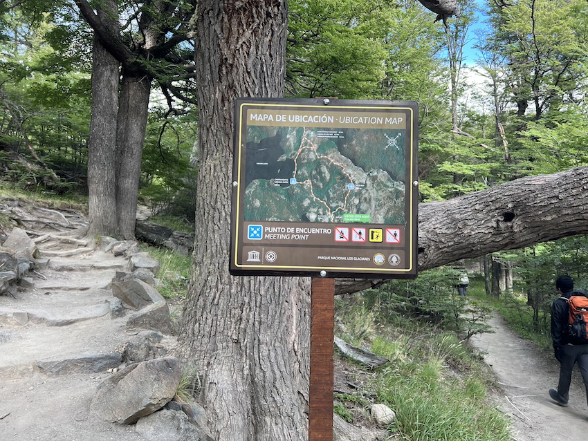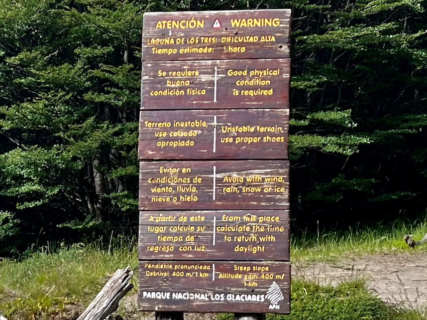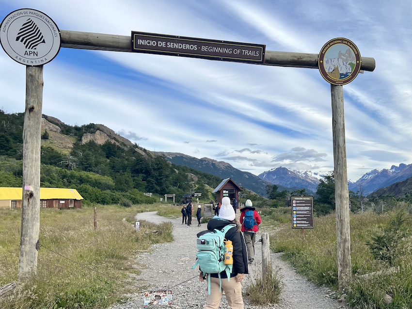 このトレイルは世界遺産に登録されている「ロス·グラシアレス国立公園」の一部なので、歩く時は入園料を支払わなければなりません(以前は無料だったけど2024年10月から有料に)。登山口でチェックされます。事前にアルゼンチンの国立公園サイトで購入しておけば、クレジットカードも使えます。サイトでは、色々ある国立公園のなかからロス・グラシアレス国立公園を選択し、「Fitz Roy Base Portal – El Chalten – Los Glaciares National Park」というアクセス・ポータルで申し込みます。2025年12月時点で、外国人は45000ペソでした。