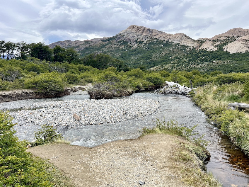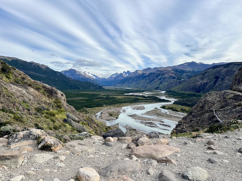 エル・チャルテンの街並みを見下ろしながら最初の勾配を登っていくと、視界が開け、デ・ラス・プエルタス・リバー・バレーのビューポイントです。
