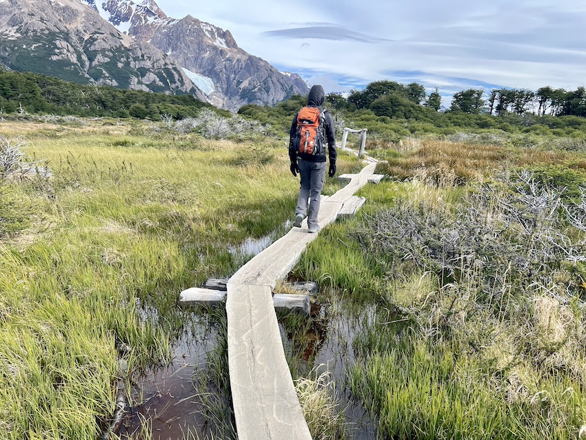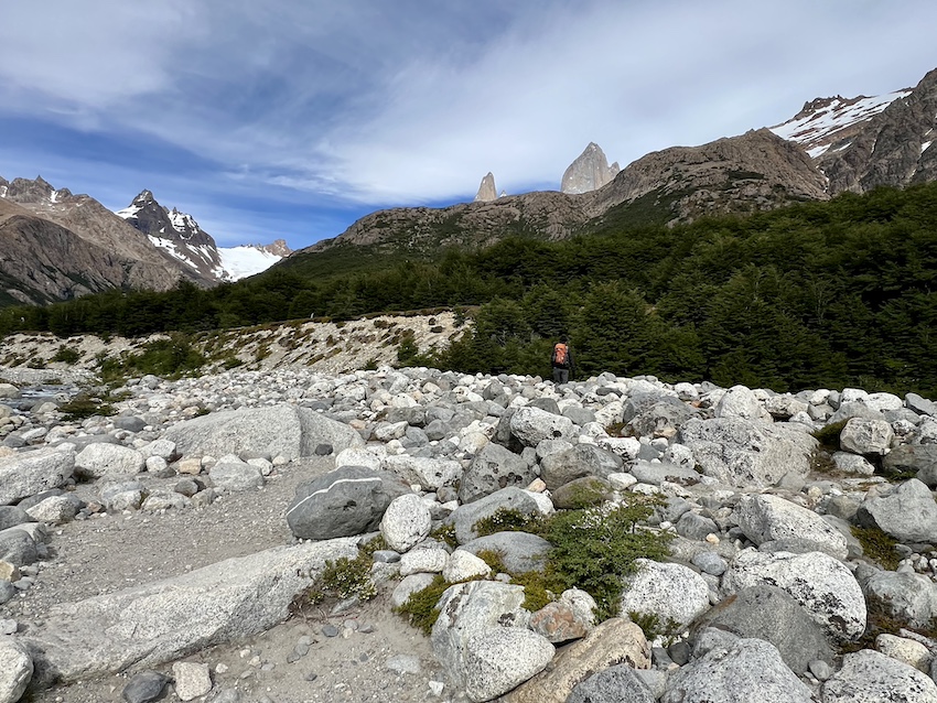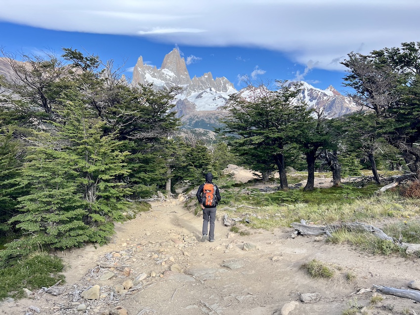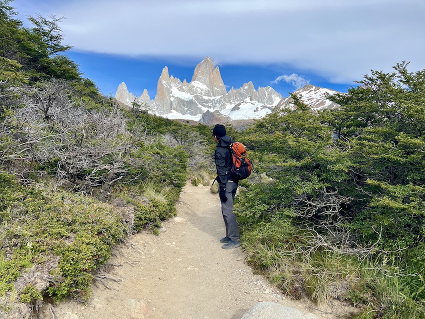 このトレイルでは、ロス・トレス湖の風景が素晴らしかったのはいうまでもありませんが、そこまでたどり着く間にも色々なフィッツロイの表情を見ることができたのが、私にとっては大きな喜びでした。歩いているあいだずっとそばで見守ってくれているようで、姿が見えるたびにたくさん元気をもらえました。
