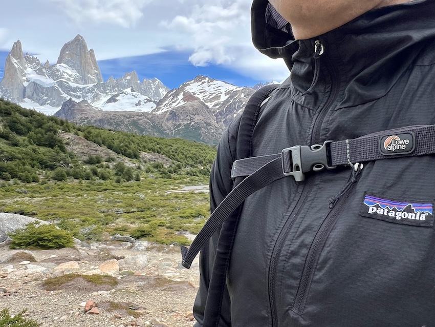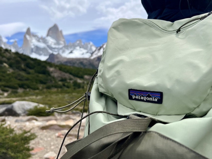 こうしてみると、ロゴに描かれた一番高い山は確かにフィッツロイです。独特の形なのでわかりやすい。生フィッツロイで検証なんて、なんたる贅沢!今後このザックや様々なパタゴニア商品を使うたびに、この瞬間やこの景色を思い出すことでしょう。
